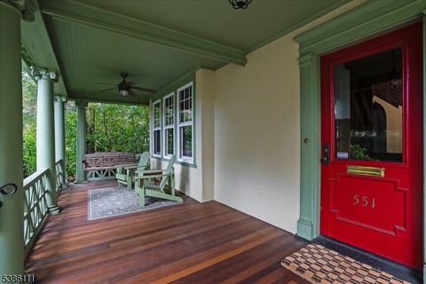 Welcome to 551 Prospect Street a stunning Victorian that blends timeless architectural detail w thoughtful modern updates. Set on an almost 1/2 acre property w wooded trails, this home offers a rare combination of historic elegance & serene, park-like living just moments from Maplewood Village & train to NYC. Step onto the inviting mahogany front porch, perfect for morning coffee. Inside, the gracious foyer features 2 large coat closets & original hardwood parquet floors. High ceilings & oversized windows throughout fill the home w natural light. The spacious living room w wood-burning fireplace & coffered ceiling, & sunlit dining room w beautiful windows set the stage for entertaining. The renovated kitchen w island opens to a large deck overlooking the fenced backyard & tranquil wooded lot beyond. Upstairs are 4 bright bedrooms w newer Pella windows, oversized closets, & an extra-large linen closet. The renovated full bath w tub completes this level. The third-floor primary suite is a true retreat w vaulted ceilings, exposed beams, mini-split for added comfort, full b with clawfoot soaking tub & tiled shower, plus 2 very generous closets. Finally, the partially finished basement boasts tall ceilings, laundry room, full bath, & direct walk-out access to the serene backyard. A newer roof w warranty, & whole house water filter add to the upgrades. This exceptional home captures the essence of Maplewood living, historic charm, modern updates, & a connection to nature.